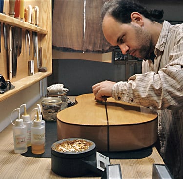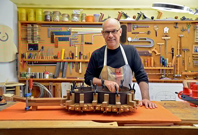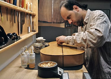 Cuando era muy joven estudiaba guitarra en el Conservatorio de Badalona y trabajaba en una carpintería. Música, madera y trabajo artesano: los ingredientes de mi vocación ya estaban ahí. Cuando tomé conciencia de ello, decidí dedicar mi vida a construir guitarras.