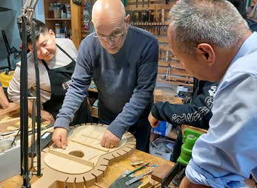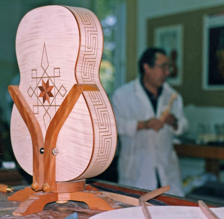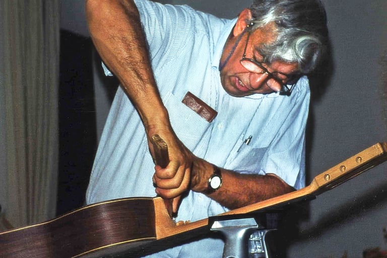 Mi modo de entender la construcción de guitarras se explica conociendo a los maestros que tutelaron mi formación. De ellos aprendí técnicas y criterios constructivos, pero también un modo de relacionarme con el oficio basado en la observación, la paciencia, la constancia y el respeto por la tradición.